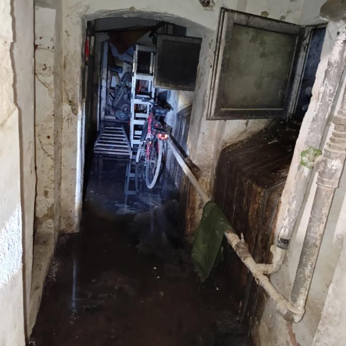 Według Grzegorza Jasioka z ARN po powodzi – jesienią 2024 roku została przeprowadzona dezynfekcja w zalanych częściach budynku. Jak wygląda piwnica „po dezynfekcji” prezentuje zdjęcie.