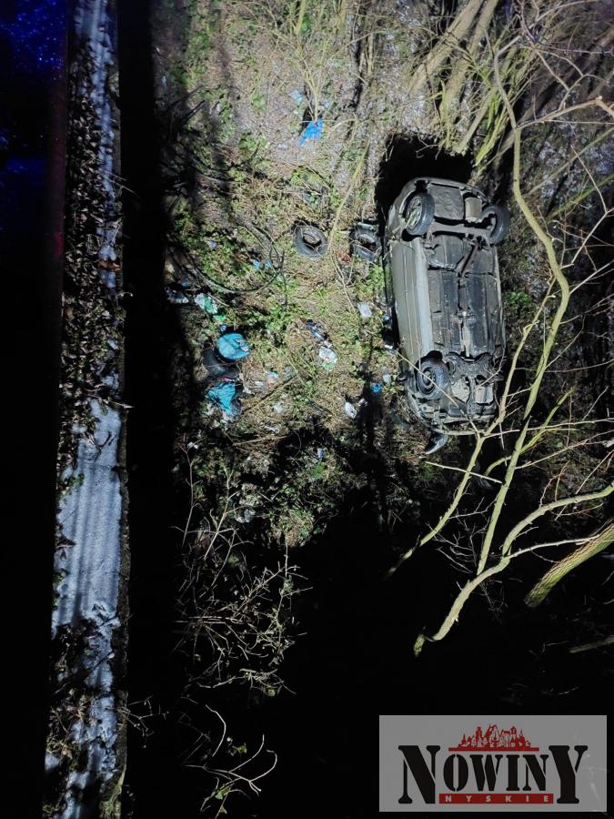 - 50-letni kierujący stracił panowanie nad pojazdem i na łuku drogi uderzył w bariery mostu, a następnie wypadł do wąwozu - informuje Komenda Powiatowa Policji w Nysie. Do tego wypadku doszło w środę około godziny 22:40 na trasie Cieszanowice – Szklary. Mężczyzna opuścił pojazd o własnych siłach. Był trzeźwy.