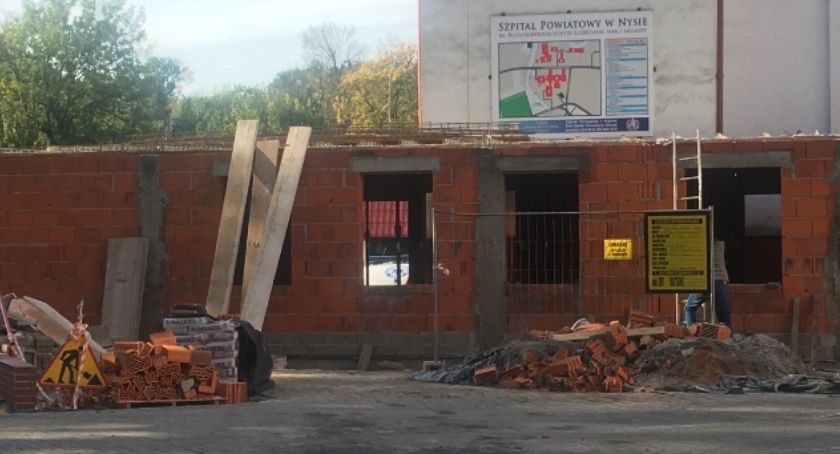 W ubiegłym tygodniu doszło do zawalenia się jednej ze ścian powstającej dobudówki szpitala w Nysie. Konstrukcja z cegieł poleciała na parking karetek.
