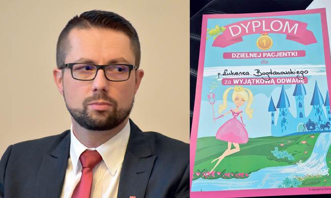 Dzielna pacjentka, czyli czym radny pochwalił się w sieciRadny Łukasz Bogdanowski pochwalił się w sieci z otrzymanego tytułu „Dzielna pacjentka” (tak, tak PACJENTKA). Wszystko za sprawą tego, że wytrwale, bez uronienia łzy dał sobie wyrwać w gabinecie dentystycznym dwie ósemki. Reklama