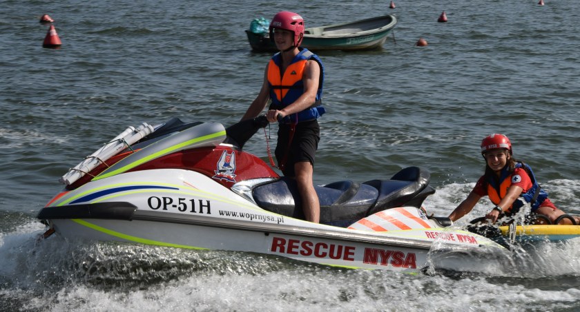 Jak relacjonuje dalej, kolejny alarm dotyczył tonącego rowerka wodnego z czterem osobami na pokładzie. Chwilę później pomocy potrzebowała też osoba korzystająca z flybordu (urządzenie do akrobacji nad wodą). WOPR nie kryje, że jednym z większych problemów nad jeziorem są nieodpowiedzialni kierujący skuterami wodnymi, którzy dosłownie wariują na wodzie. W niedzielę jeden z nich okazał się nietrzeźwy, a inni skontrolowani nie posiadali uprawnień do sterowanie skuterem. Zostali za to ukarani przez policję mandatami. WOPR przestrzega przed brawurą w wodzie i przypomina, że na Jeziorze Nyskim obowiązuje zakaz szybkiego pływania w odległości mniejszej niż 100 m od plaży i przystani.