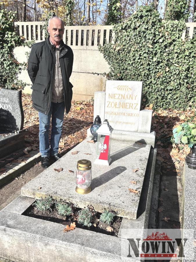 – Postanowiłem odnowić napisy i posprzątać grób – mówi. I tak też zrobił. Po wszystkim poinformował o tym zarządcę cmentarza. Tam dowiedział się, że na nyskim cmentarzu są jeszcze 4 inne groby, w których leżą nieznani żołnierze. Również odnowił na nich napisy i wysprzątał je. – Nieznany żołnierz to dla nas symbol walki o Ojczyznę, poświęcenia i oddania dla niej życia. To wynikało z potrzeby serca, żeby te groby nie przepadły jak wiele innych zapomnianych i zaniedbanych – mówi pan Kazimierz.