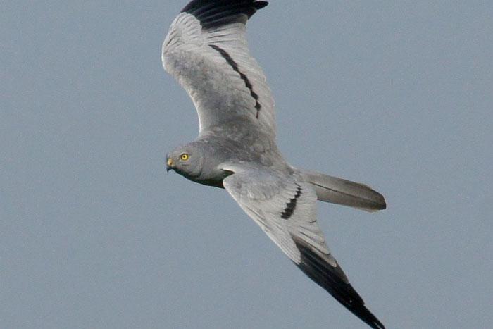 Błotniak łąkowy (Circus pygargus) to dość duży ptak drapieżny, który jak gigantyczny motyl buja się nad polami. Jego smukła sylwetka wyraźnie odróżnia go od ociężałego myszołowa, a lekki powolny lot różni go od porywczego jastrzębia. Charakterystyczne są dobrze widoczne w locie: jaskrawo biały kuper i dwie czarne pręgi na niebieskawym wierzchu skrzydeł, które wyglądają jakby były pomazana węgielkiem. Nigdy nie wydaje w locie przeciągłych głosów, jak to czyni pospolity wszędzie myszołów. Błotniak łąkowy jest ptakiem wędrownym. Przylatuje do nas pod koniec kwietnia. Gniazdo umieszcza w rozległych łanach upraw rzepakowych lub zbożowych (przy czym preferuje rzepak, pszenżyto, bądź żyto). Można by więc rzec, że służy mu kolektywizacja rolnictwa. Wokół gniazda zakłada rewir łowiecki, którego powierzchnia waha się w granicach od 500 do 1000 ha. Wychowuje zwykle tylko 1-5 młodych, w zależności od obfitości drobnych gryzoni na polach. Młode wykluwają się w kilkudniowych odstępach, skutkiem czego różnią się dość znacznie rozmiarami. Reklama