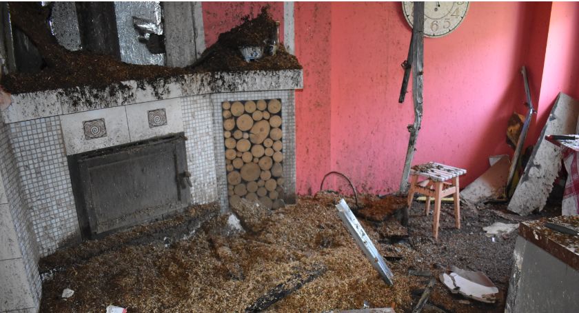 Ogień wybuchł po godz. 21. Strażacy otrzymali zgłoszenie, że pali się sadza w kominie. Jednak po przybyciu na miejsce okazało się, że skala pożaru jest znacznie większa. Paliło się już poddasze. Na miejsce wezwano aż 10 jednostek straży pożarnej. Właściciela domu wyszła z niego o własnych siłach, jednak źle się poczuła i potrzebowała pomocy medycznej. Zniszczenia się poważne, oprócz dachu i poddasza, zniszczeniu uległy pomieszczenia na parterze.