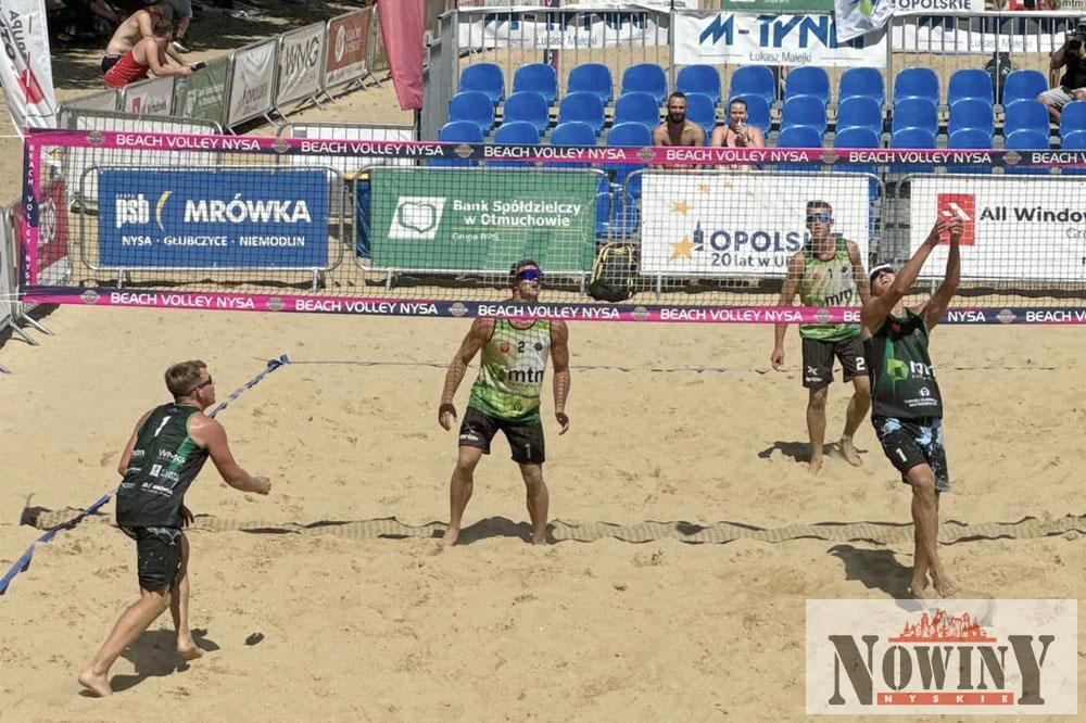 Galeria zdjęć z turnieju siatkówki plażowej, gdzie mężczyźni rywalizowali o zwycięstwo. Zobacz ujęcia z emocjonującego finału, gdzie Bąk/Sarnecki zwyciężyli. Zdjęcia także z pojedynku o trzecie miejsce oraz z pozostałych spotkań. Sprawdź triumfujące graczy oraz zadowolone i walczące kobiety podczas niedzielnego turnieju.