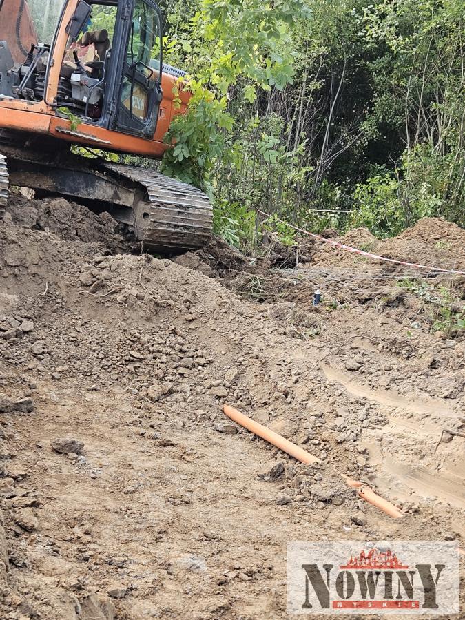 Zdjęcia przedstawiają uszkodzony gazociąg przy ul. Powstańców Śląskich po awarii, która miała miejsce w czwartek 2 października. Na miejscu interwencji było siedem zastępów straży pożarnej i patrole policji z Głuchołaz i Nysy. Ewakuowano 85 mieszkańców z okolicznych domów. Działania ratownicze zakończyły się po 20:00, a za usuwanie awarii odpowiedzialne były Polska Spółka Gazownictwa.