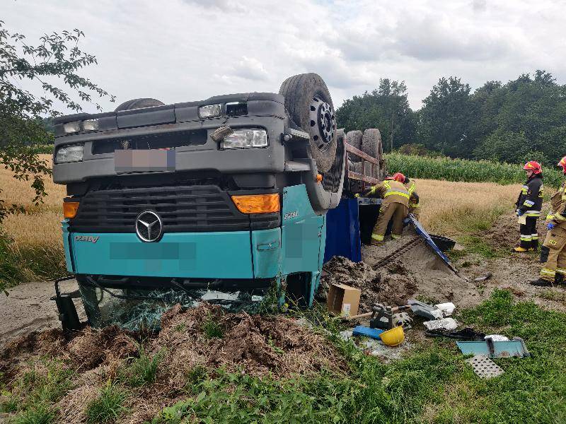 Zdjęcia Dachowanie ciężarówki w Kopernikach [GALERIA] - fotorelacja