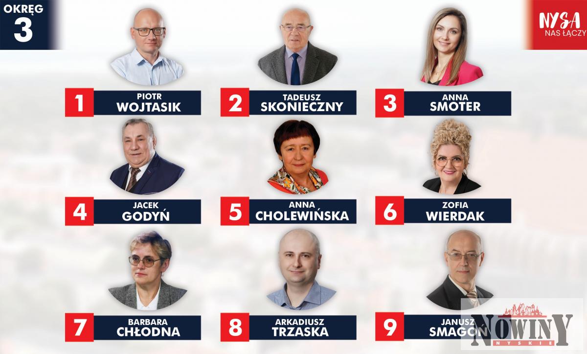 Miasto Nysa ulice: 3 Maja, Aleja Wojska Polskiego, Azaliowa, Bazaltowa, Berberysowa, Braci Gierymskich, Bramy Grodkowskiej, Brata Dionizego Wegnera, Brata Ferdynanda Fludera, Brata Gotfryda Bochnigha, Brata Kazimierza Froncka, Brata Rajmunda Kasperczyka, Andrzeja Brodzińskiego, Bukszpanowa, Bursztynowa, Diamentowa, Xawerego Dunikowskiego, Josepha Von Eichendorffa, Franciszkańska, Generała Tadeusza Bora-Komorowskiego, ul. Generała Augusta Emila Fieldorfa Pseudonim "Nil", Generała Stanisława Maczka, Generała