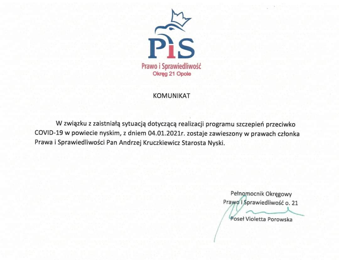 Kruczkiewicz zawieszony przez PiS. Starostą pozostanie