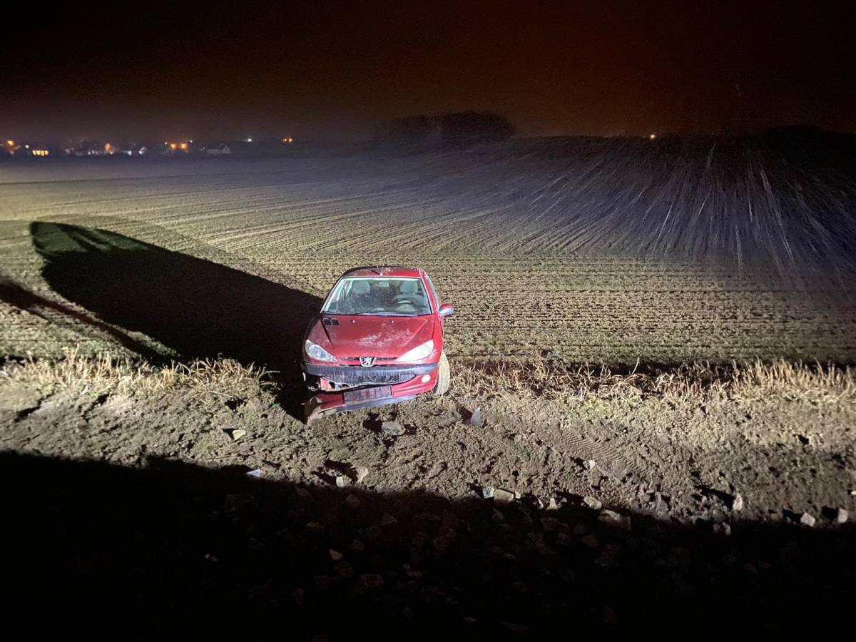 Zdjęcia Porzucone auto. Kierowca wyleciał z drogi? - fotorelacja