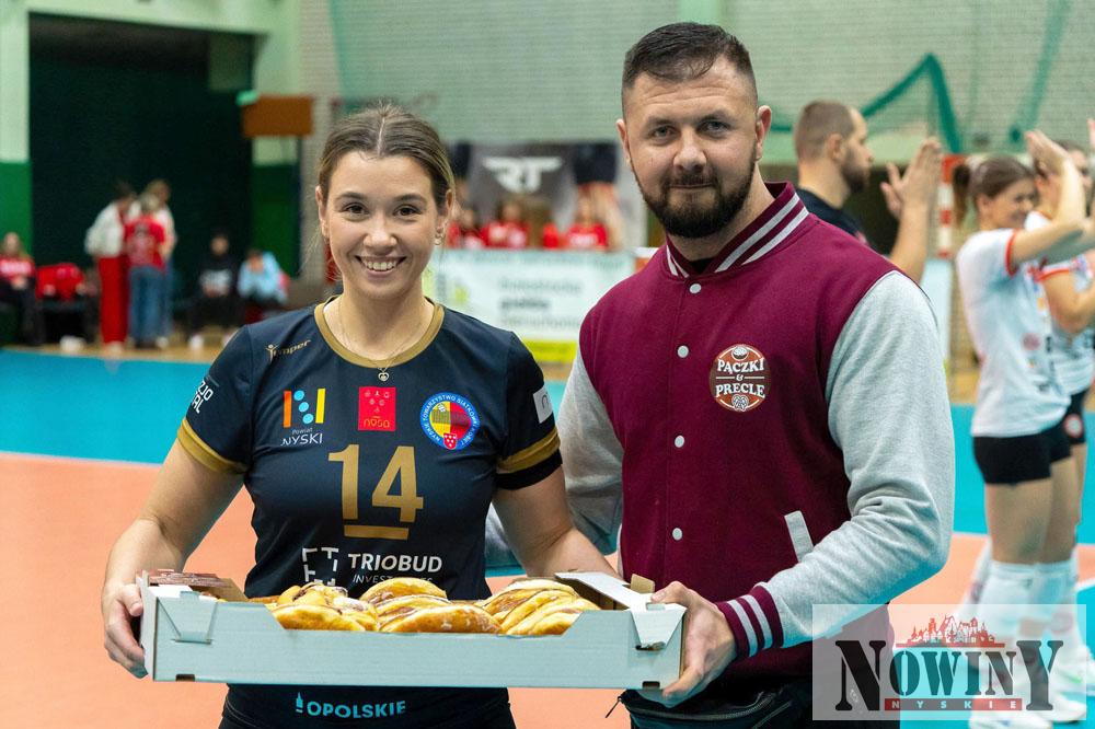 NTSK PANS Komunalnik Nysa - KSG Warszawa 0:3. Po meczu nasza kapitan - Ania Śmidowicz otrzymała z rąk jednego ze sponsorów klubu z Białegostoku nieco słodkości