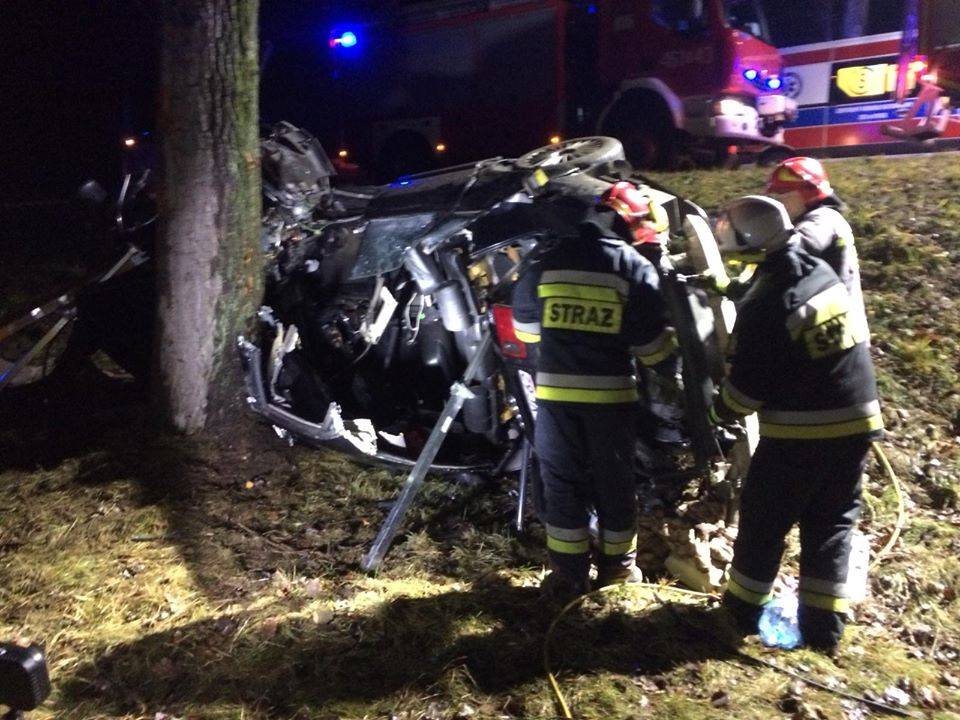 Zdjęcia Wypadek pod Wierzbięcicami. Auto uderzyło w drzewo - fotorelacja