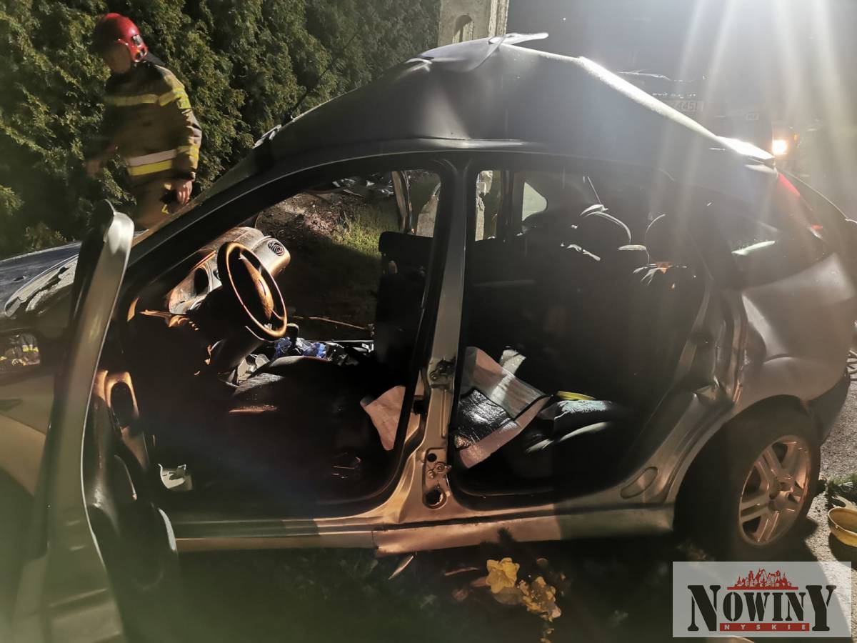 Zdjęcia Wypadek w Charbielinie. Ford uderzył w słup energetyczny - fotorelacja